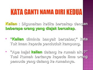 Bahasa Melayu BM Gradelevel. Kata Ganti Nama Diri Kedua pendengar c. Kata ganti orang secara umum.