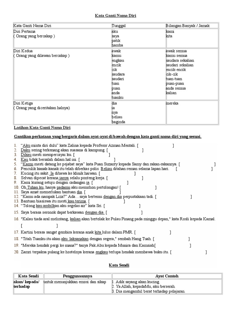 Beliau tunggal Digunakan untuk orang yang kita hormati misalnya ibu bapa guru dan pemimpin. Kata ganti diri digunakan untuk mengganti kata nama. Kata ganti nama diri 1.